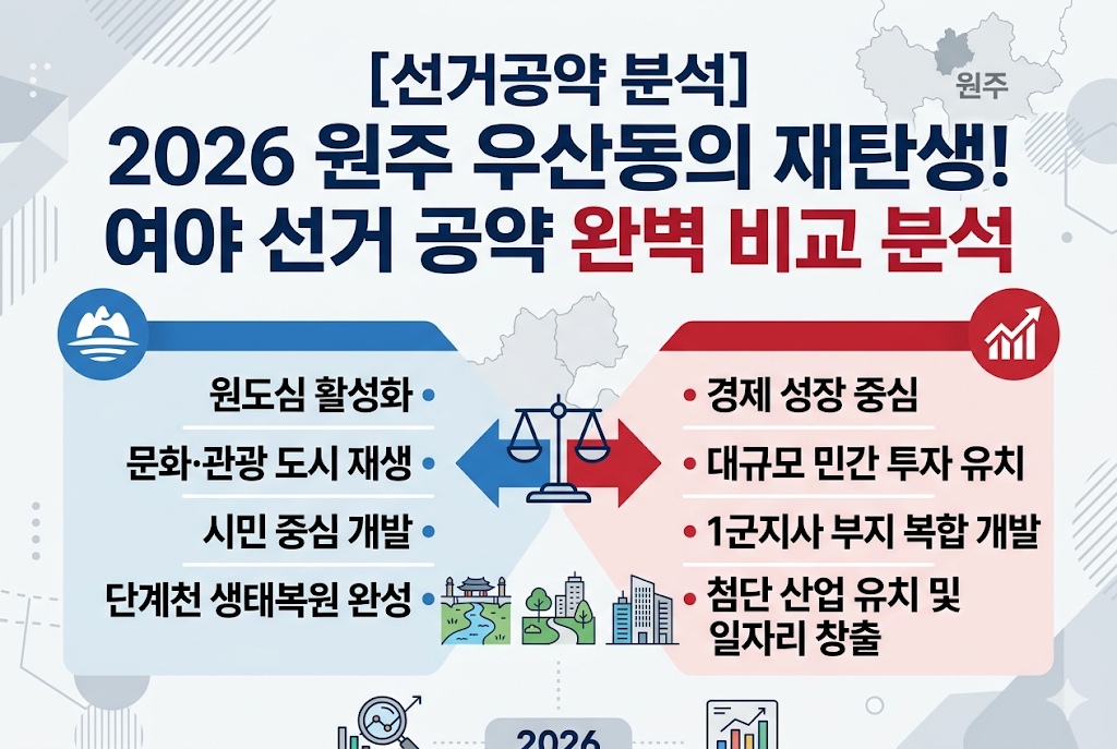 [선거공약 분석] 2026 원주 우산동의 재탄생! 여야 선거 공약 완벽 비교 분석