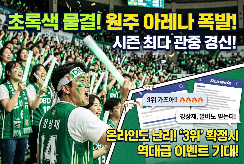 3위로 진출 시 6강에서 승리하면 정규리그 2위인 안양 정관장과 4강에서 만납니다. 반면 4위로 진출 시 1위 창원 LG와 만나게 될 확률이 높습니다. 어느 팀하나 만만한 상대는 없지만, 팀 상성과 최근 흐름을 고려했을 때 DB가 가장 자신 있는 대진을 완성하기 위해선 반드시 3위를 지켜내야 합니다.📢 5. 원주 팬들의 응원과 커뮤니티 반응
