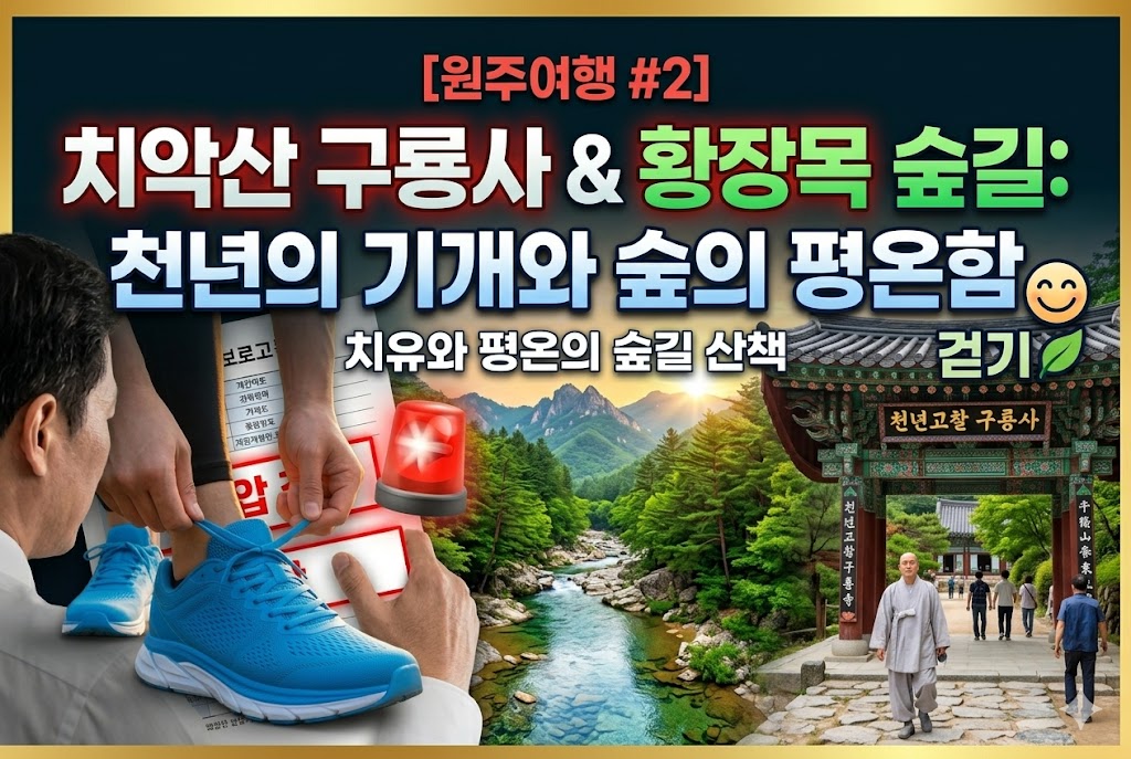 원주의 영산, 치악산 구룡사와 황장목 숲길에서의 하루는 어떠셨나요? 붉은 수치가 가득했던 검진 결과지에 놀란 마음이 이곳의 초록빛 생명력으로 조금이나마 치유되셨기를 바랍니다. 건강은 대단한 비결이 있는 것이 아니라, 이렇게 좋은 풍경 속에서 나를 위해 시간을 내어 걷는 '정성' 그 자체입니다.