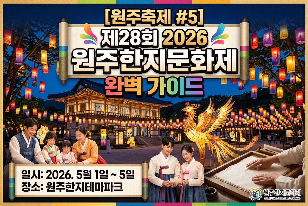 안녕하세요, 원주를 사랑하는 여러분! 드디어 기다리고 기다리던 원주한지문화제의 계절이 돌아왔습니다. 매년 5월이면 원주한지테마파크는 은은한 한지등 불빛과 천년의 결을 간직한 종이 향기로 가득 차는데요. 올해는 특히 '세계로 뻗어나가는 한지'를 콘셉트로 그 어느 때보다 화려하고 풍성한 볼거리를 준비했다고 합니다.