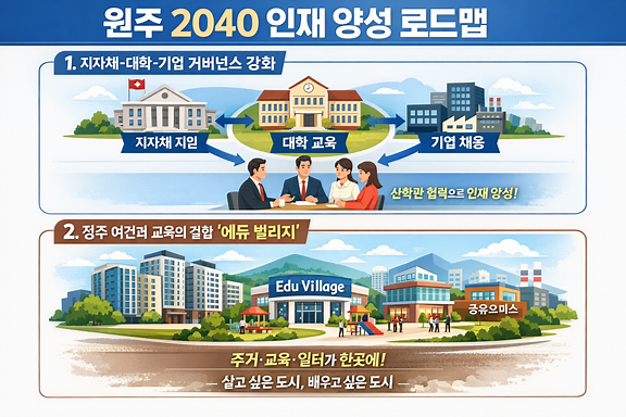 원주형 교육·연구 생태계는 단순한 교육 정책이 아닙니다. 이는 원주시의 명운을 건 미래 생존 전략입니다. 2040년의 원주는 더 이상 수도권의 배후 도시가 아니라, 자체적으로 인재를 길러내고 혁신을 주도하는 글로벌 지식 거점이 될 것입니다.