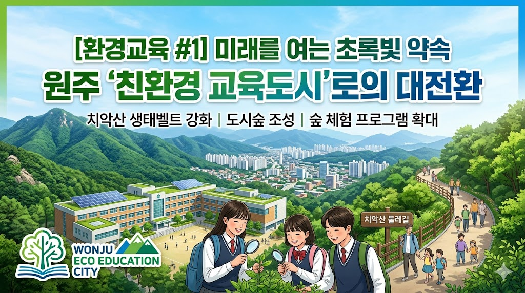 우리가 숨 쉬는 공기와 매일 마주하는 풍경이 아이들의 교과서가 된다면 어떨까요? 대한민국 중부권의 거점 도시 원주가 이제 '친환경 교육도시'라는 새로운 옷을 입고 도약합니다. 단순히 나무를 심는 것에 그치지 않고, 치악산이라는 천혜의 자연 자산을 현대적인 교육 시스템과 결합하여 도시 전체를 거대한 생태 학습장으로 변모시키고 있습니다. 기후 위기 시대, 탄소 중립은 더 이상 선택이 아닌 생존의 문제입니다. 원주시는 치악산 생태벨트 복원과 도시 숲 조성을 통해 인간과 자연이 공존하는 구체적인 해법을 제시하고자 합니다.