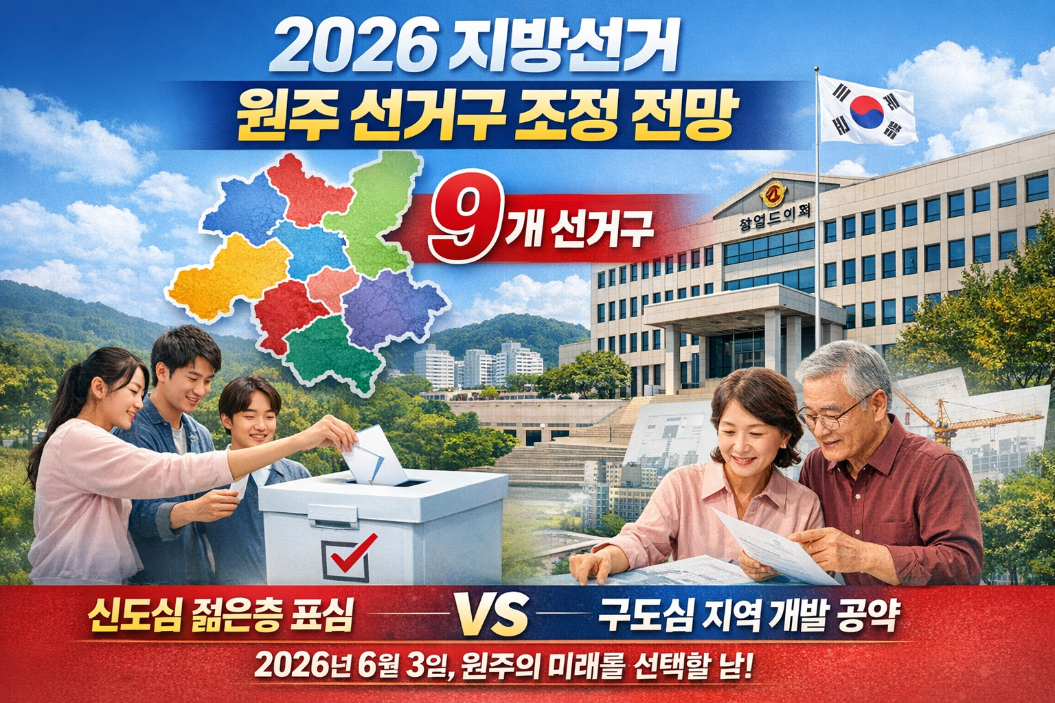 신도심 지역의 젊은 층 투표율과 구도심의 지역 연고 개발 공약이 승패를 가를 것입니다. 2026년 6월 3일 선거는 원주의 예산 1조 원 시대를 이끌 일꾼을 뽑는 중요한 날입니다. 선거구 획정 위원회의 최종 공고를 주시하며 우리 동네 후보를 꼼꼼히 살펴야 합니다.